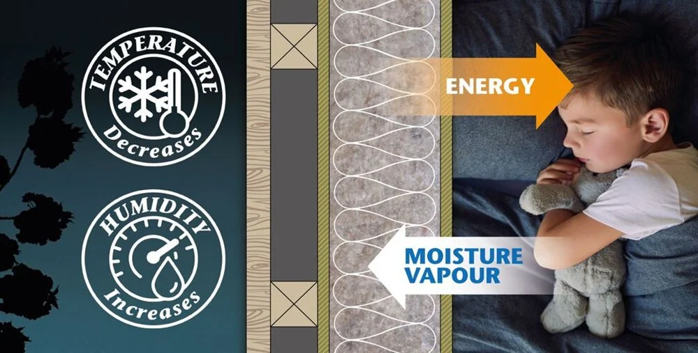 A clever combination of vapour permeable building components work in harmony to provide air-tightness, control humidity, and remove moisture from the indoor space.